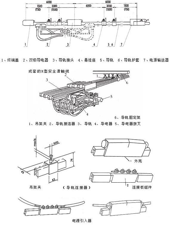 四、單極組合式滑觸線裝配示意圖及主要零部件