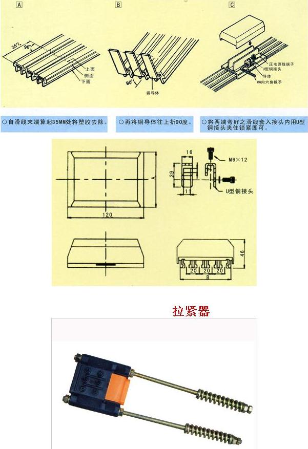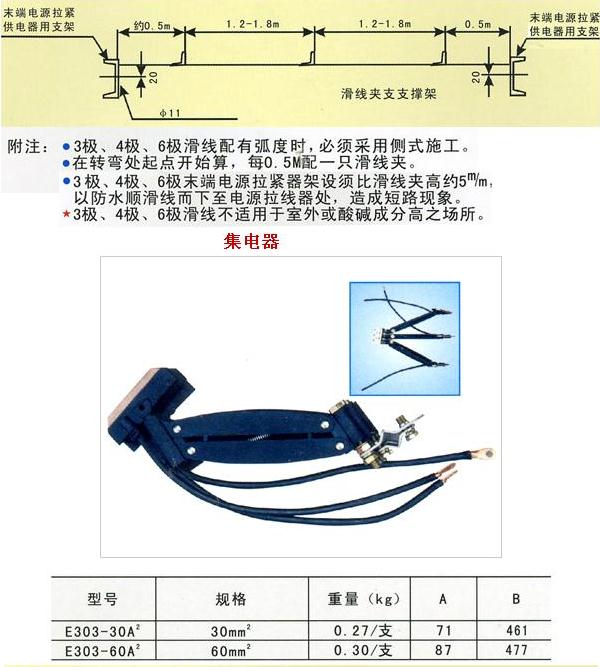 柔性一體式滑觸線是以無氧銅(導(dǎo)電率達(dá)99.99%)輸送電源、銅導(dǎo)體之厚度厚(一般標(biāo)準(zhǔn)厚為2.8m/m×10W)、壓降小、導(dǎo)電率倍佳;可根據(jù)用戶的車間長度或用戶的需求來配一條以之相同長度的安全電軌,使整個(gè)車間安全配電中間沒有任何接口,真正解決了國產(chǎn)滑觸線因接口多經(jīng)?ㄗ〖娝⒍斐啥搪坊虿荒苓\(yùn)行的問題。并且適用于曲線、弧形及高低行走的設(shè)計(jì),并且安裝簡便。從而使整套天車工程美觀、整潔又安全。產(chǎn)品有3P、 4P、 6P等規(guī)格,在自動(dòng)化生產(chǎn)的行列中,絕對是供電系統(tǒng)最佳的選擇。